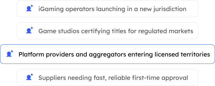 We guide you from initial regulatory requirements through to final certification, step by step, with hands-on expert support at every stage. You get clear direction, fast feedback, and a structured testing process that keeps your launch on track — so you can go live with confidence.